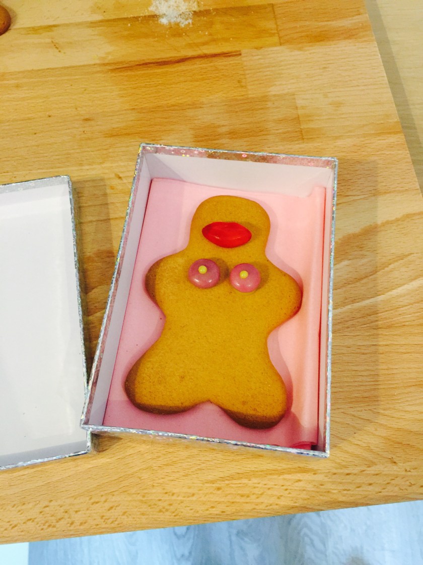 Gingerbreast Girl by OCDave April 29, 2016April 29, 2016 Filed under: Uncategorized My girlfriend’s sister had a boob reduction so I made her a special gingerbread man biscuit to say ‘have a speedy recovery!’. Share this: Click to share on X (Opens in new window) X Click to share on Facebook (Opens in new window) Facebook Like Loading... Related