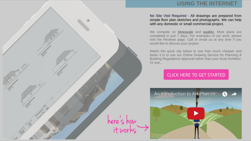 My Architectural Drawing business, ArkiPlan.co.uk has been running for 7 years. One of my first forays into creativity was designing the logo, website and iPhone app from scratch. I even produced an animated video featuring me which is below.
