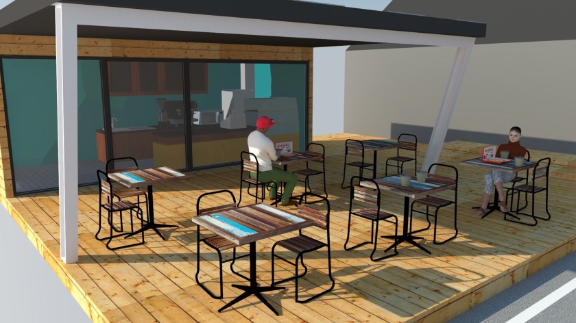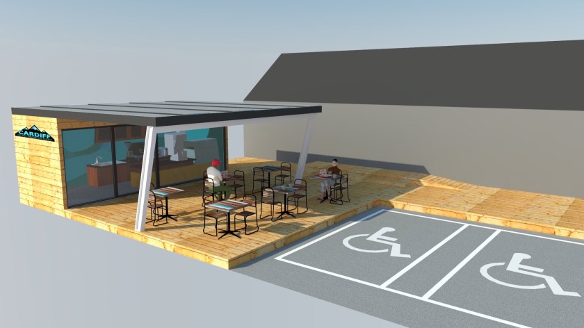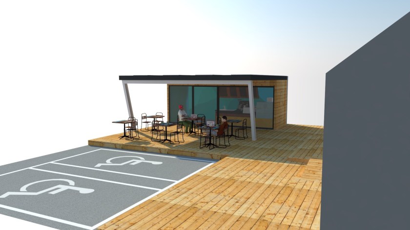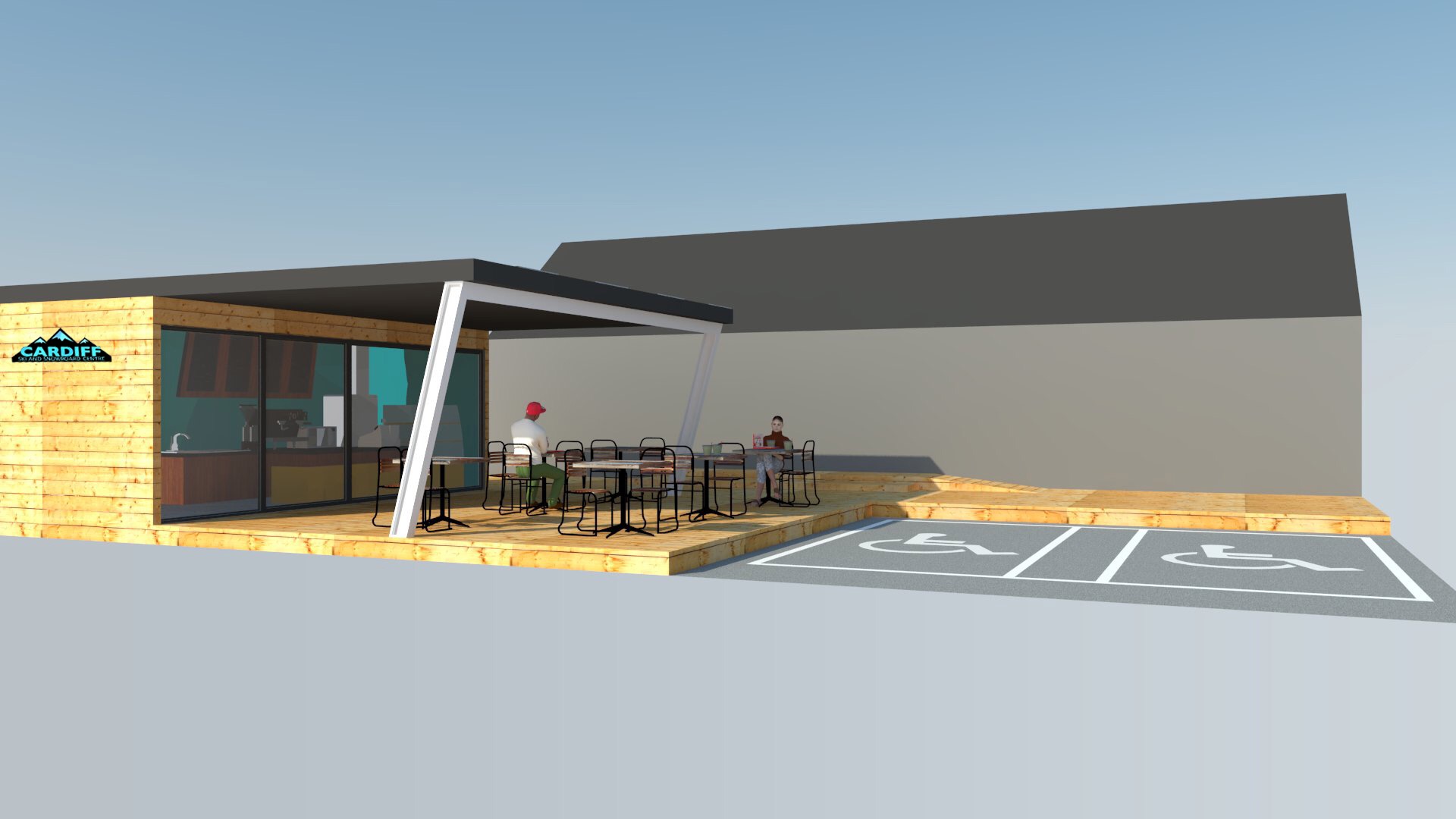 A friend of mine who works at Fairwater Ski Centre asked me to produce some designs and visualisations for a shipping container cafe to be built in the car park at the centre. They are currently sorting the finances to complete the project.