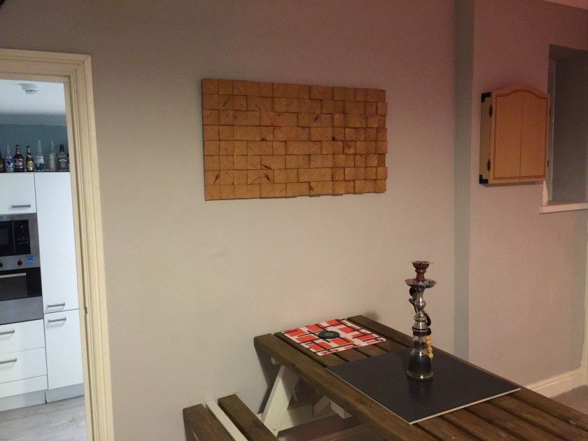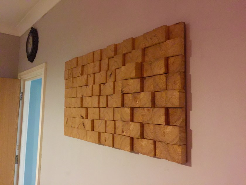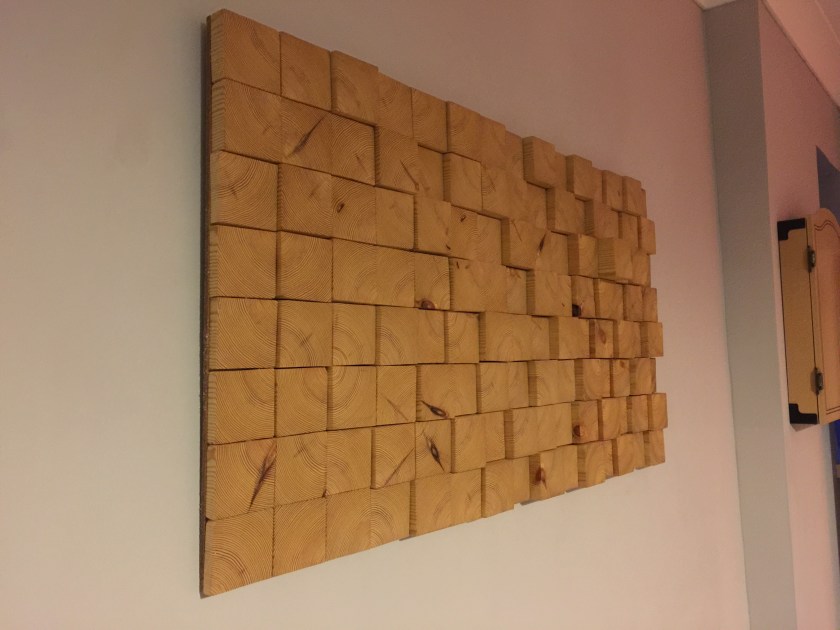 Wooden Wall Art by OCDave April 29, 2016 Filed under: Uncategorized This is called ‘a mild disturbance’ and depicts the gradually disipating ripple effect that a dropped pebble in a pond would create using solid blocks of oiled redwood. Share this: Share on X (Opens in new window) X Share on Facebook (Opens in new window) Facebook Like Loading... Related